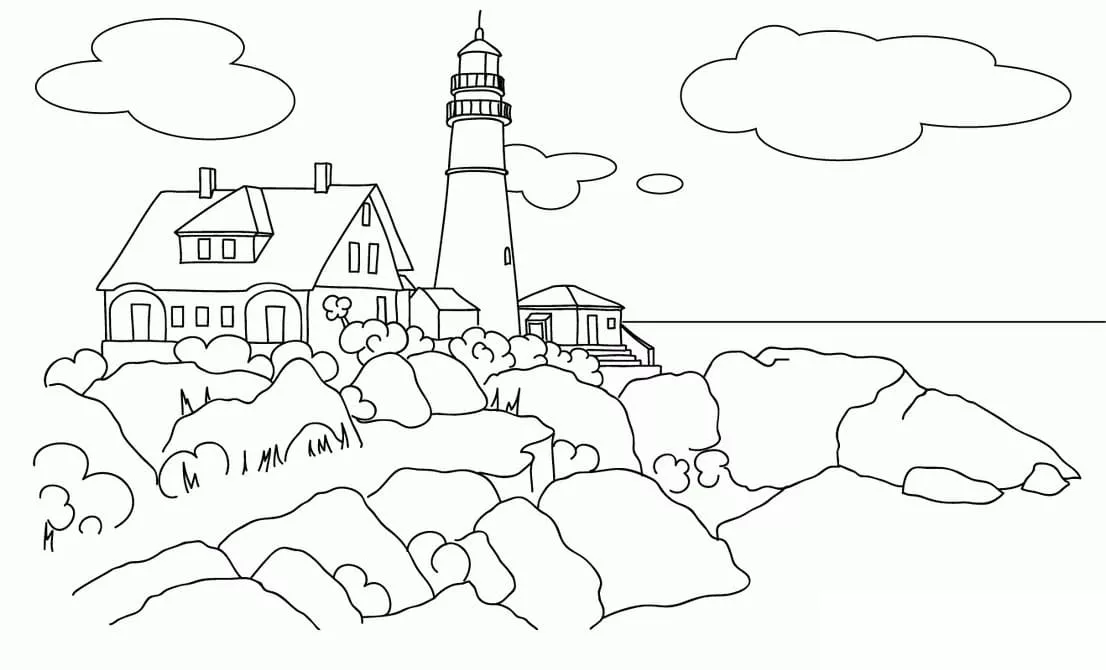 Click the Paisagem do farol Páginas para colorir para visualizar a versão imprimível ou colorir online (compatível com iPad e tablets Android).