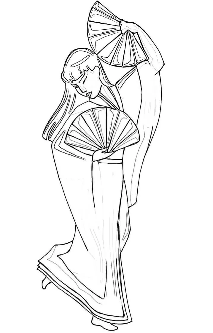 : Download Printable Mulher japonesa com fãs Coloring Page