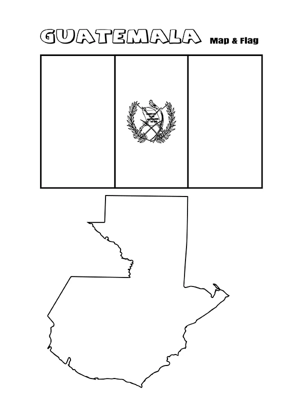 : Download Printable Bandeira e mapa da Guatemala Coloring Page