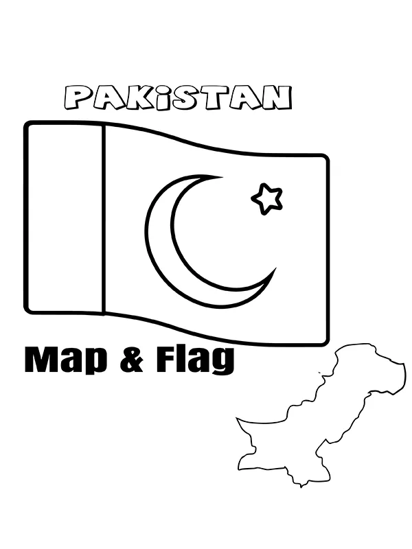 : Download Printable Bandeira e mapa do Paquistão Coloring Page