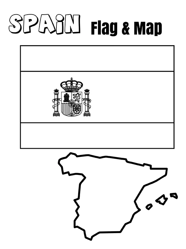 : Download Printable Bandeira e mapa da Espanha Coloring Page