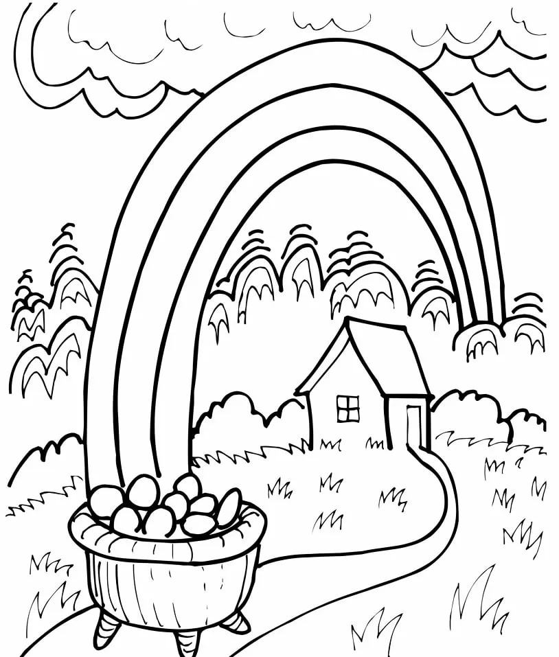 Arco-íris e nuvens para colorir