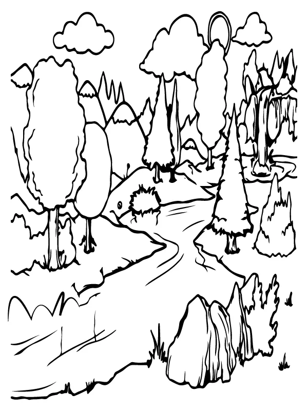 : Download Printable Rio Calmo da Floresta Coloring Page