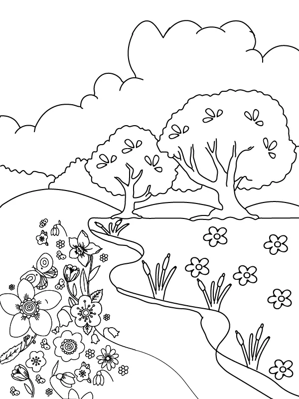 : Download Printable Flores e árvores ao ar livre Coloring Page
