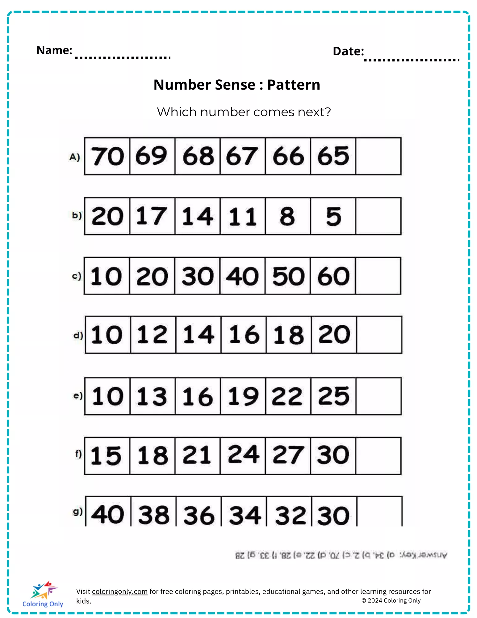 Number Sense : Pattern free Printable Worksheet