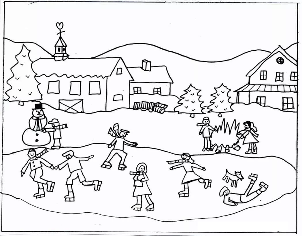 Coloring description : Download Printable Desenho de Cena de inverno de patinação no gelo para colorir Coloring Page