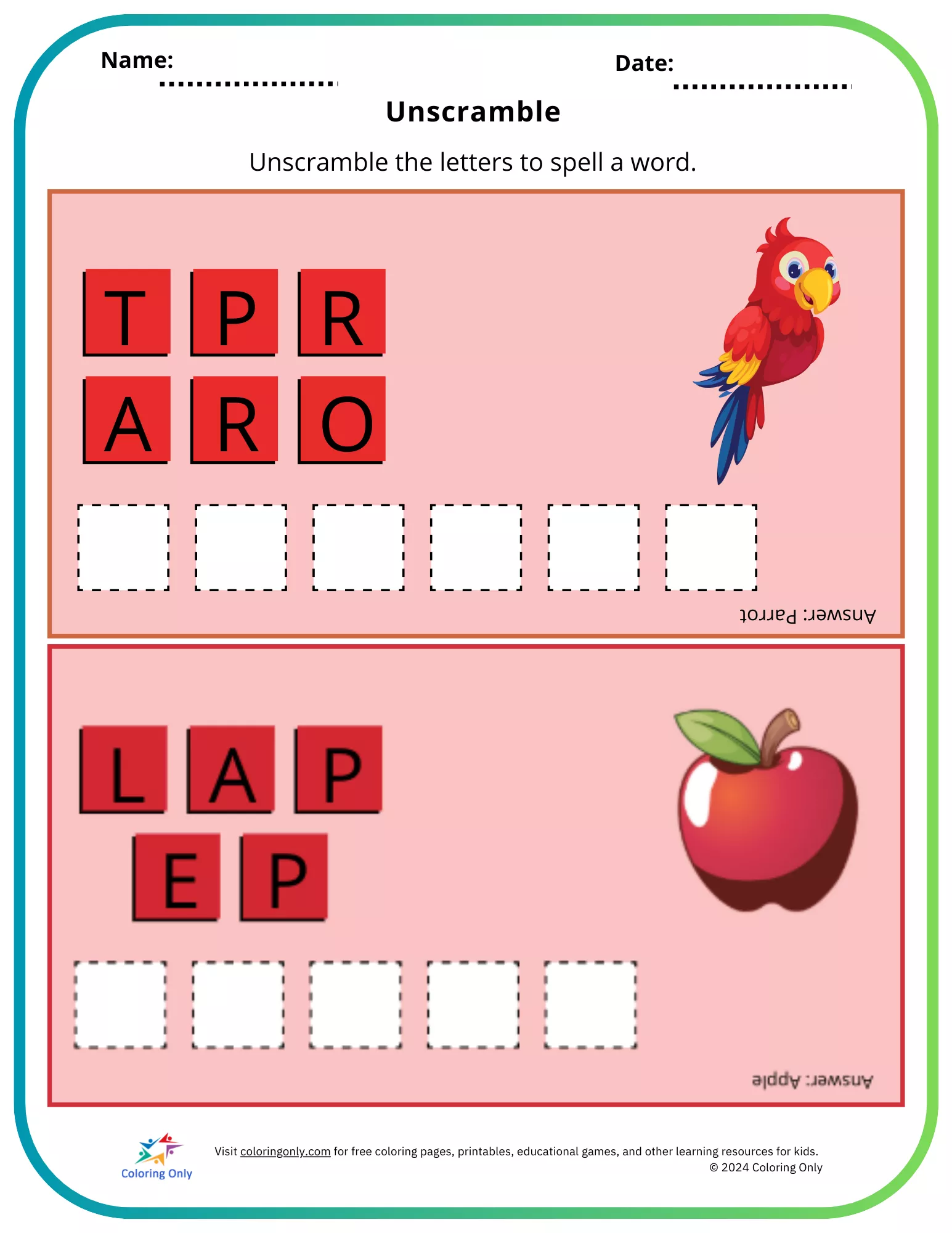 Match and color free Printable Worksheet