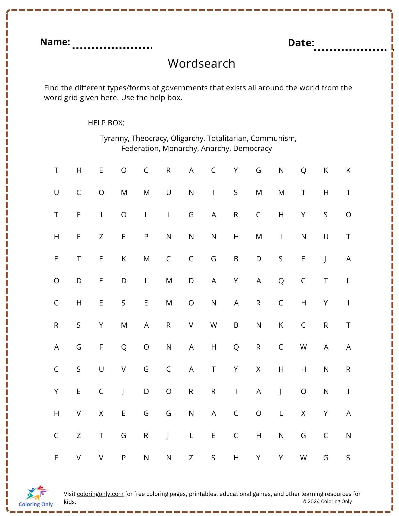 : Download Printable Printable worksheet template Coloring Page