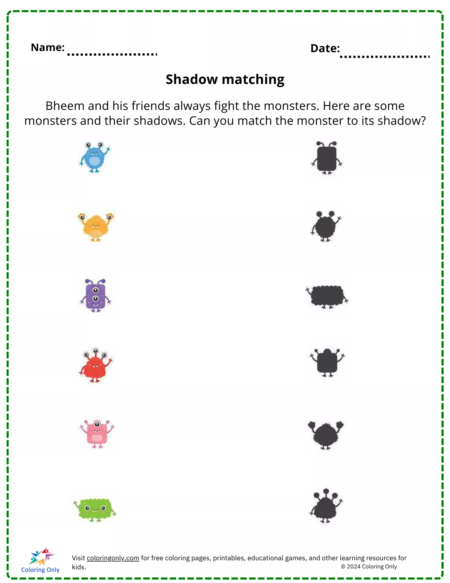 Shadow matching free Printable Worksheet