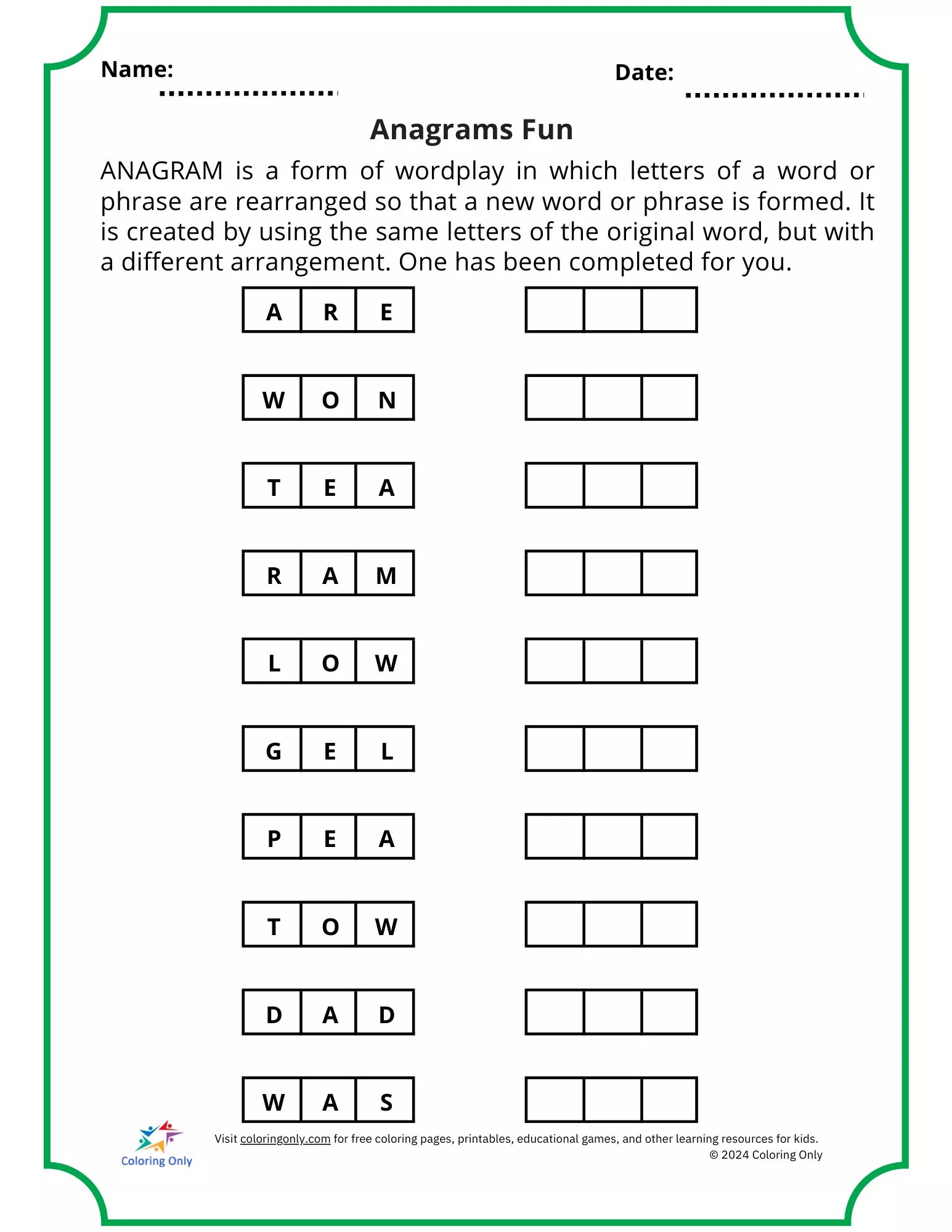 : Download Printable Printable worksheet template Coloring Page
