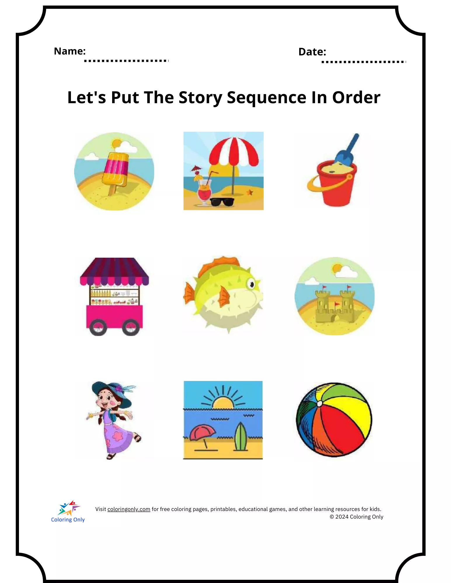 Early literacy: Story sequencing free Printable Worksheet