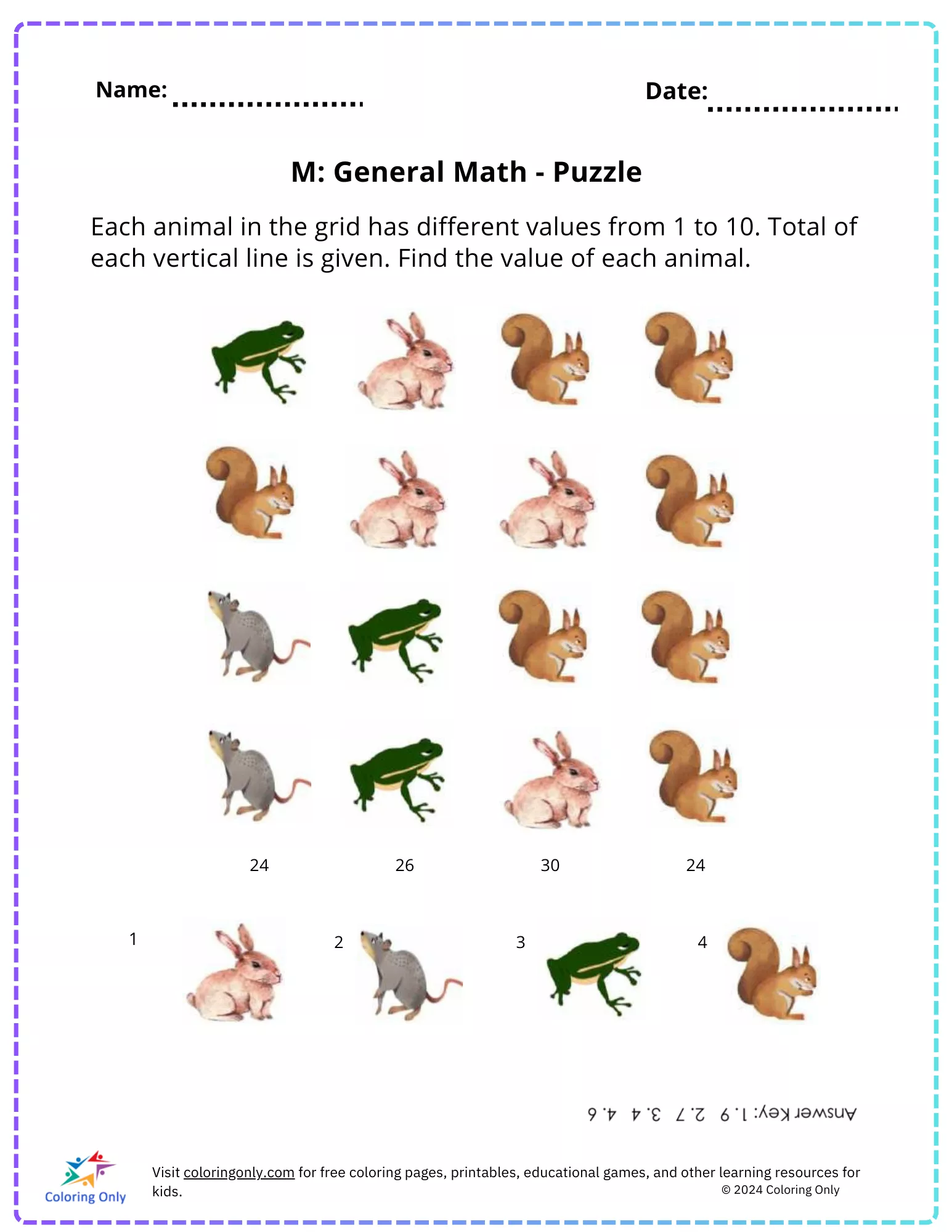 Esta planilha para impressão gratuita de M: General Math - Puzzle incentiva a resolução de problemas, o pensamento lógico e aprimora suas habilidades aritméticas de uma maneira divertida e interativa.