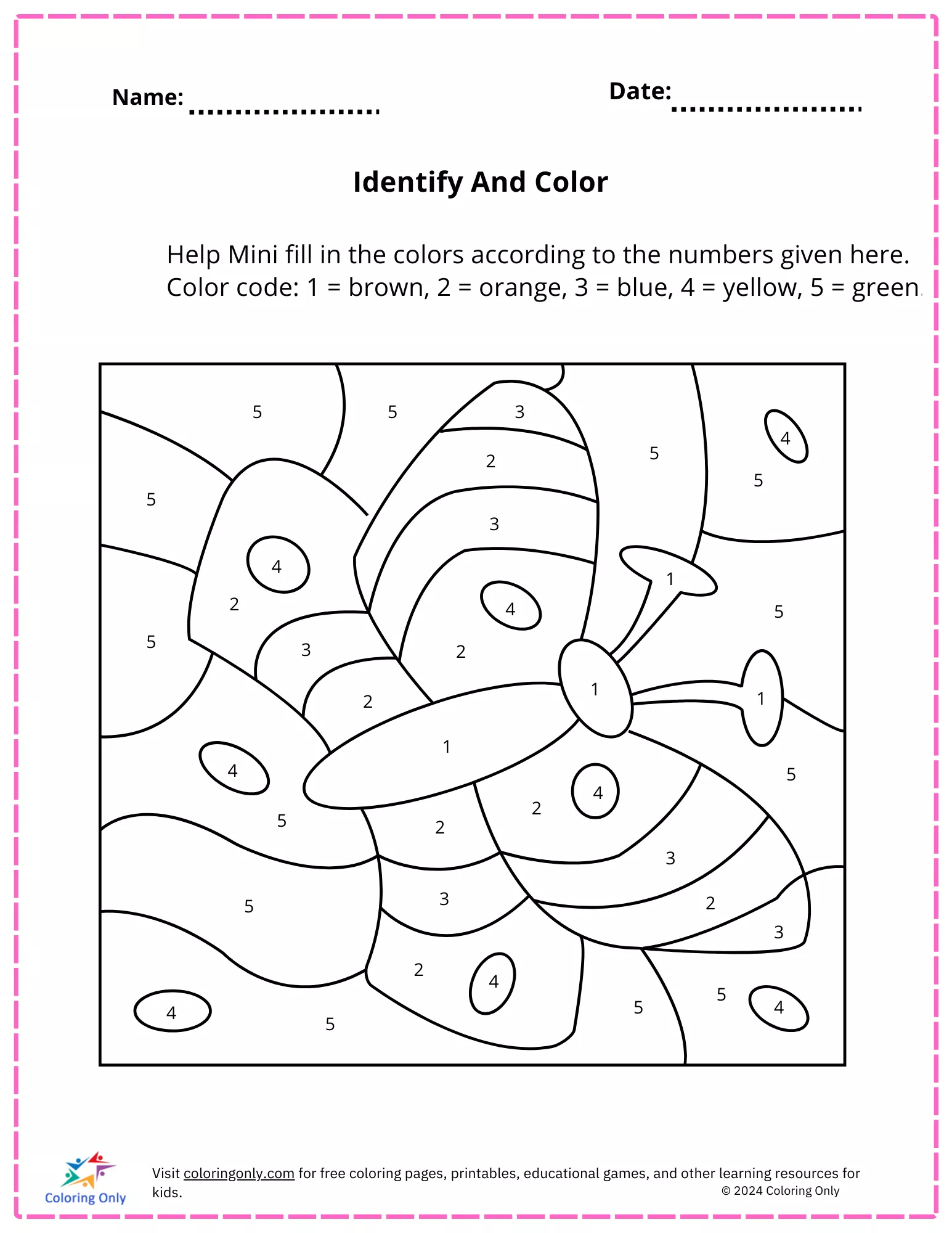 A "Planilha para impressão gratuita de identificação e coloração" apresenta uma imagem encantadora que as crianças podem dar vida seguindo as instruções de cor por número.