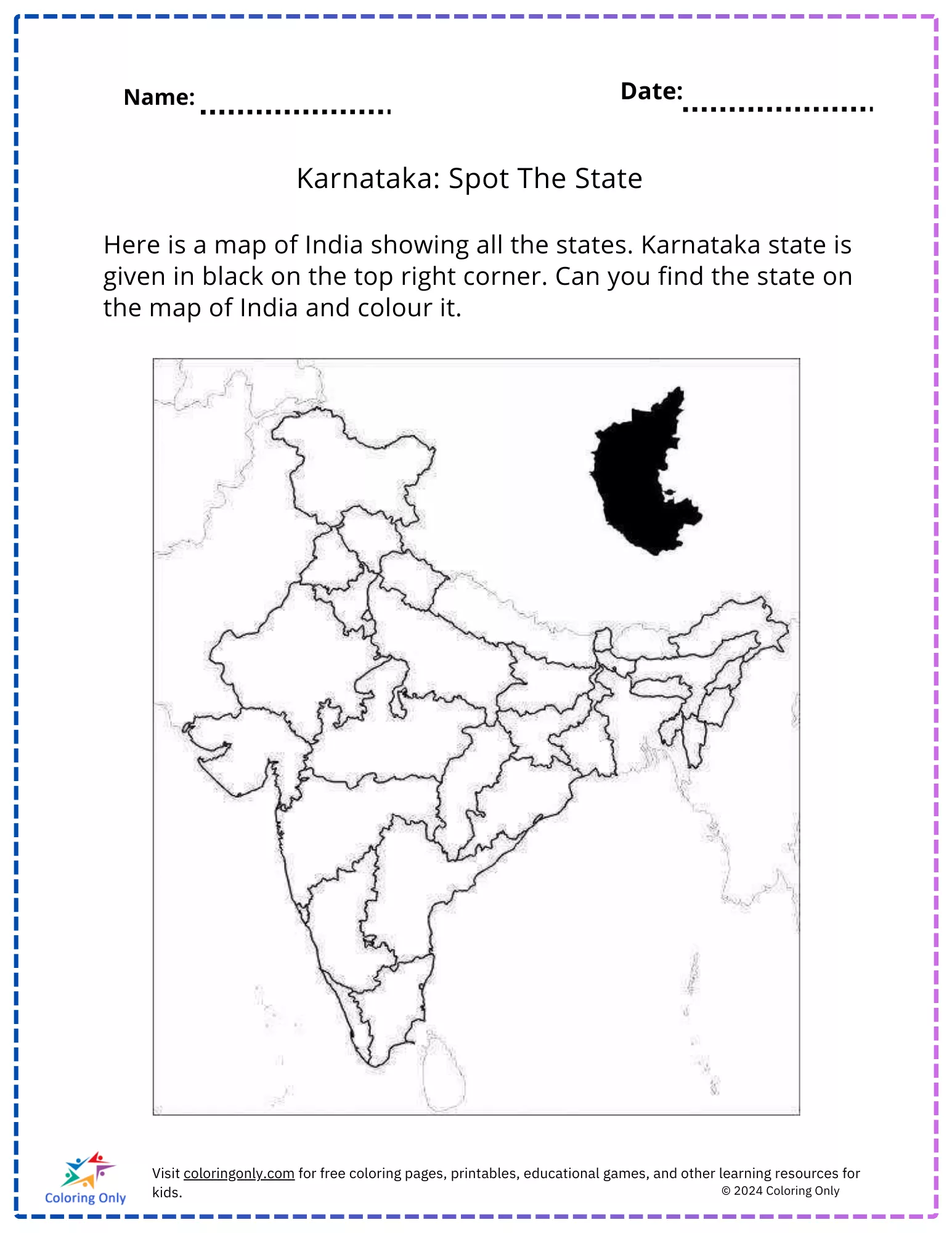 Karnataka: Spot The State Folha de Trabalho Imprimível Gratuita