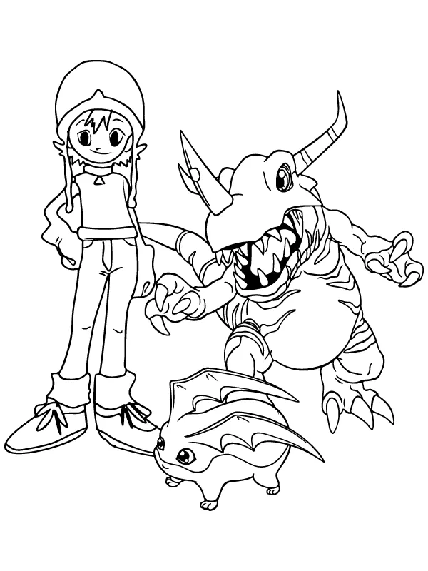 : Download Printable Coloração gratuita de Sora e Greymon Coloring Page