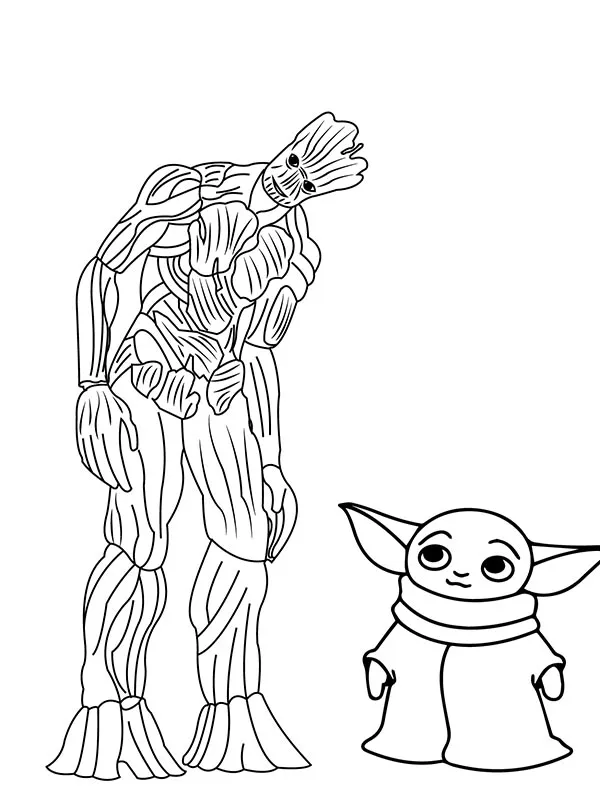 : Download Printable Velho Groot e Baby Yoda Coloring Page
