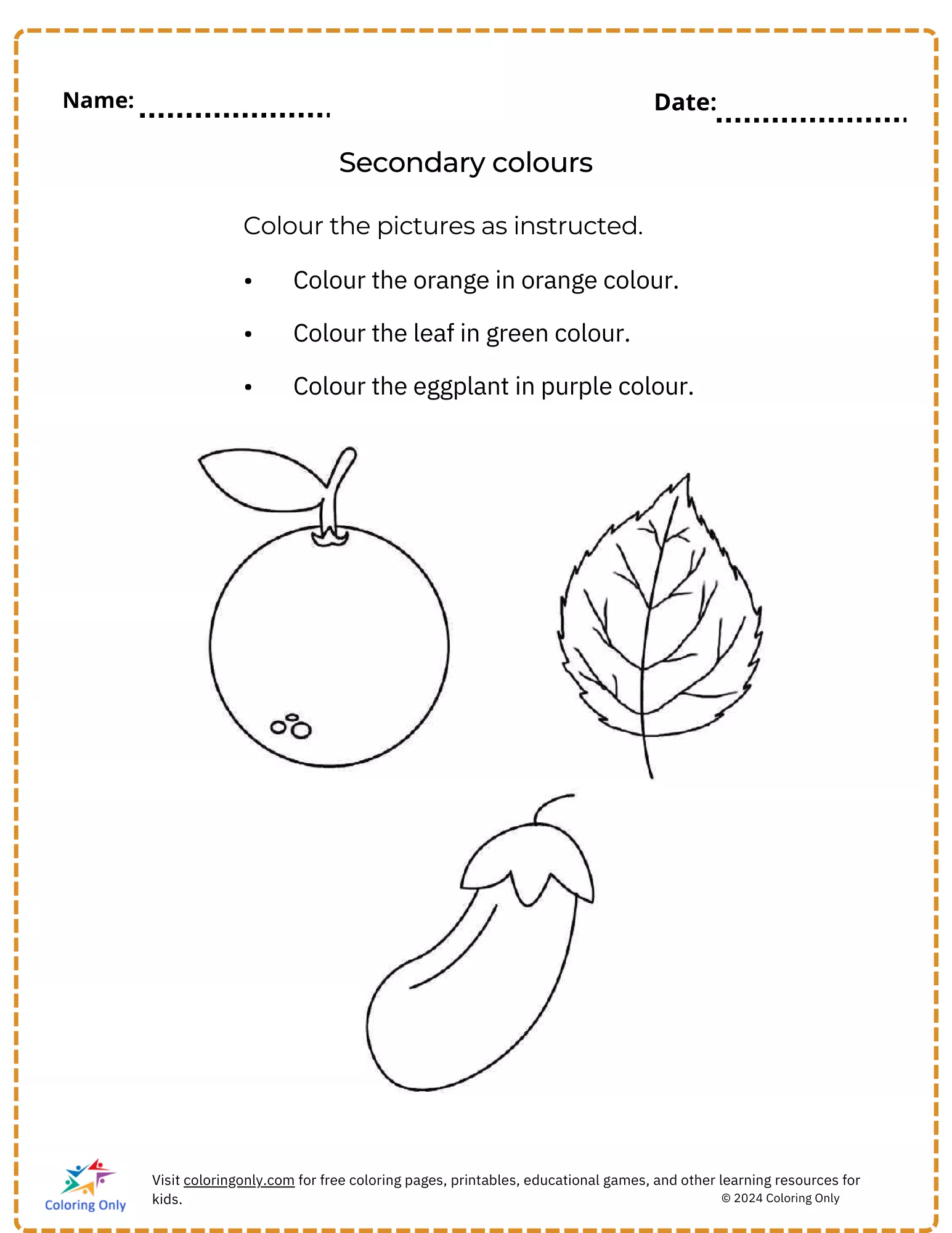 : Download Printable Secondary colours free Printable Worksheet Coloring Page