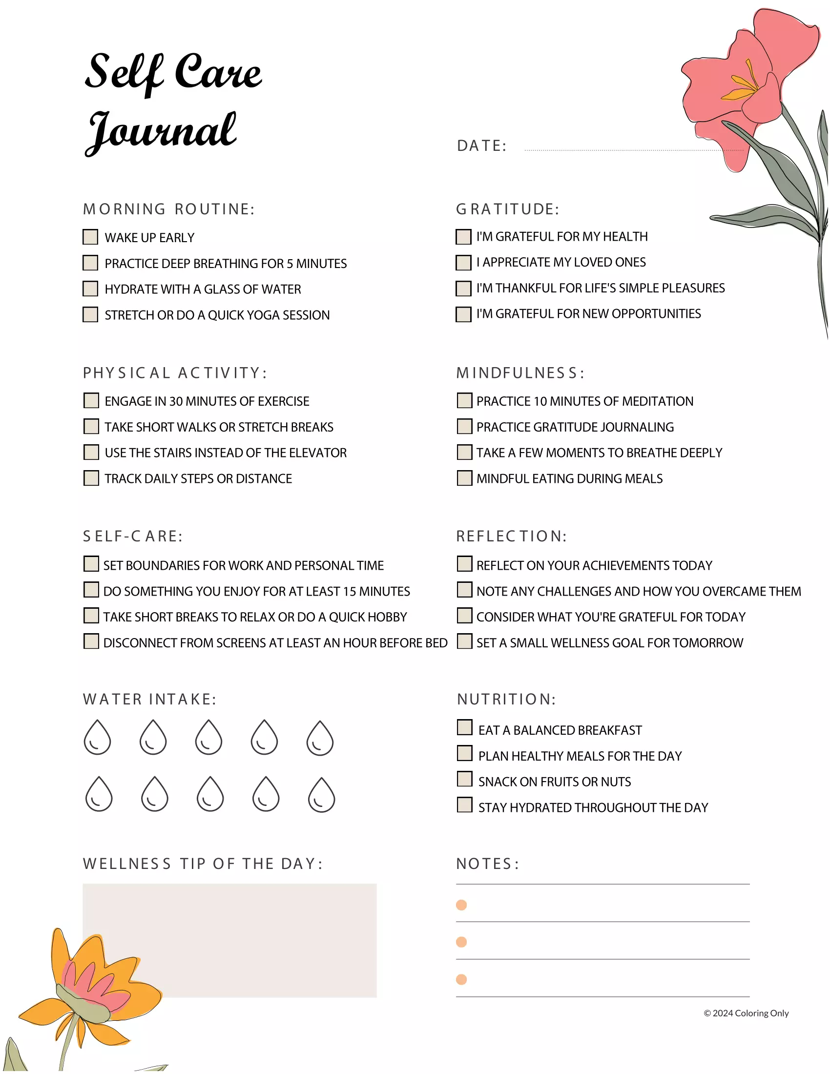 : Download Printable Self Care Journal (1) Coloring Page