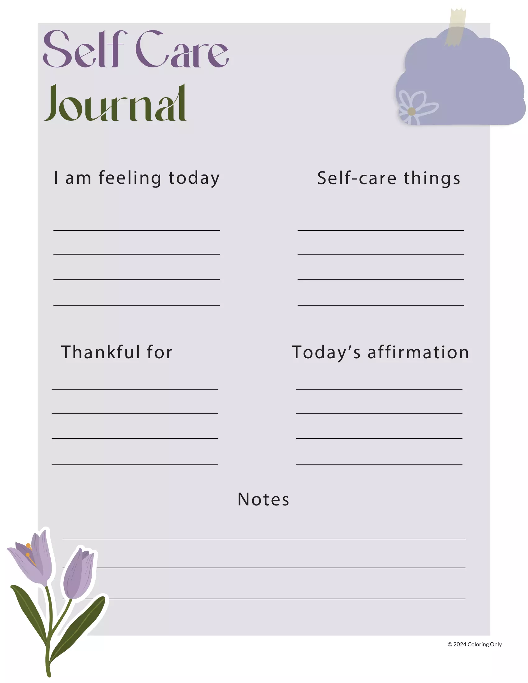 : Download Printable Self Care Journal (7) Coloring Page