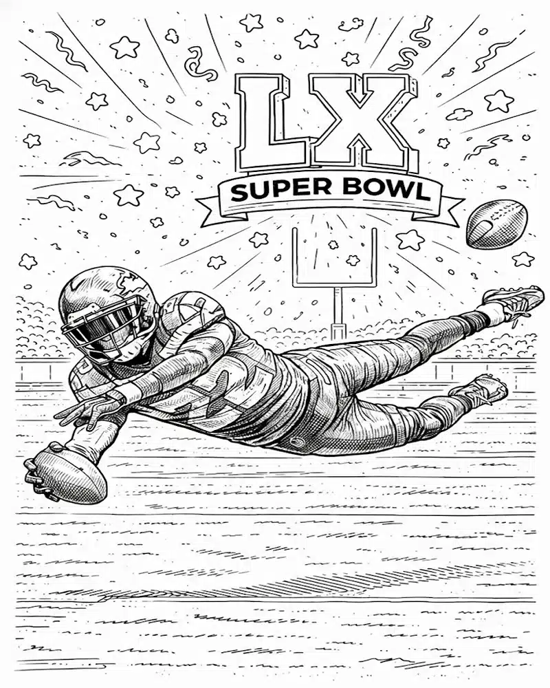 : Download Printable Super Bowl LIX Catch Attempt Coloring Page Coloring Page