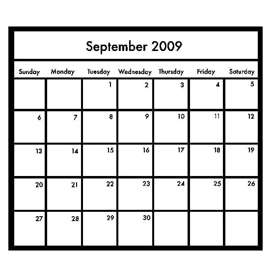 : Download Printable Calendário de setembro de 2009 Coloring Page