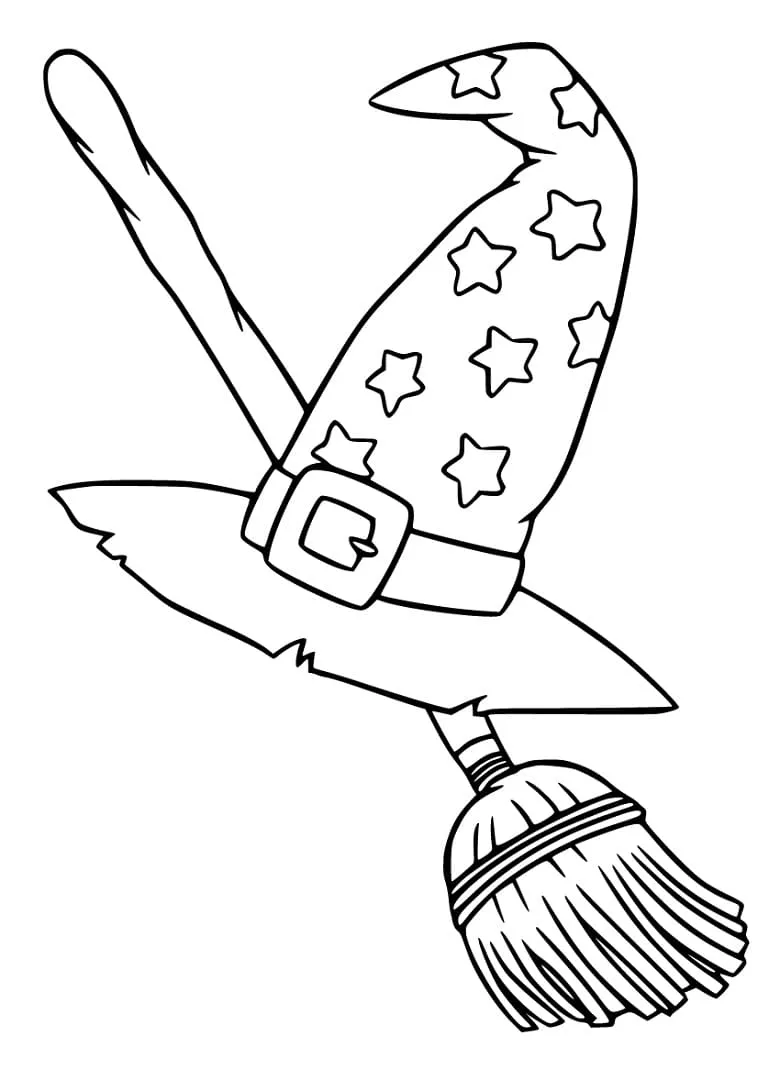 : Download Printable Chapéu de bruxa com vassoura Coloring Page