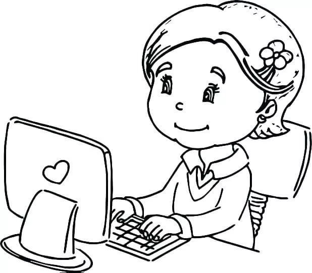 : Download Printable Menina estudando no computador Coloring Page