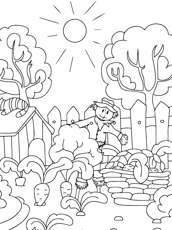 : Download Printable Espantalho em uma empresa de vegetais Coloring Page