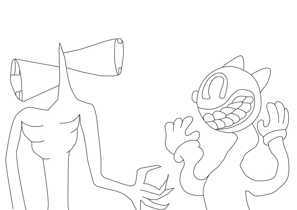 Coloring description : Download Printable Gato dos desenhos animados e cabeça da sereia Coloring Page