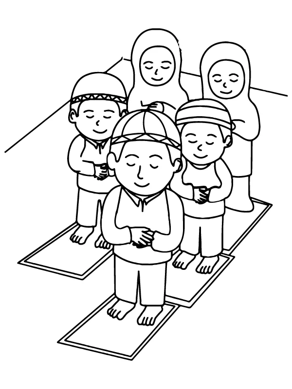 : Download Printable Muçulmanos orando em um tapete de oração Coloring Page