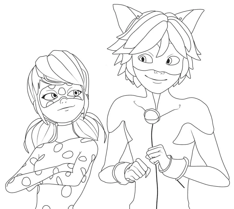 : Download Printable Ladybug e Cat Noir de Miraculous Coloring Page