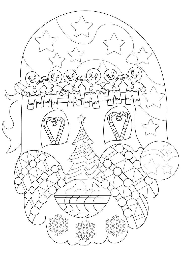 : Download Printable Cabeça de Papai Noel com símbolos de Natal Coloring Page
