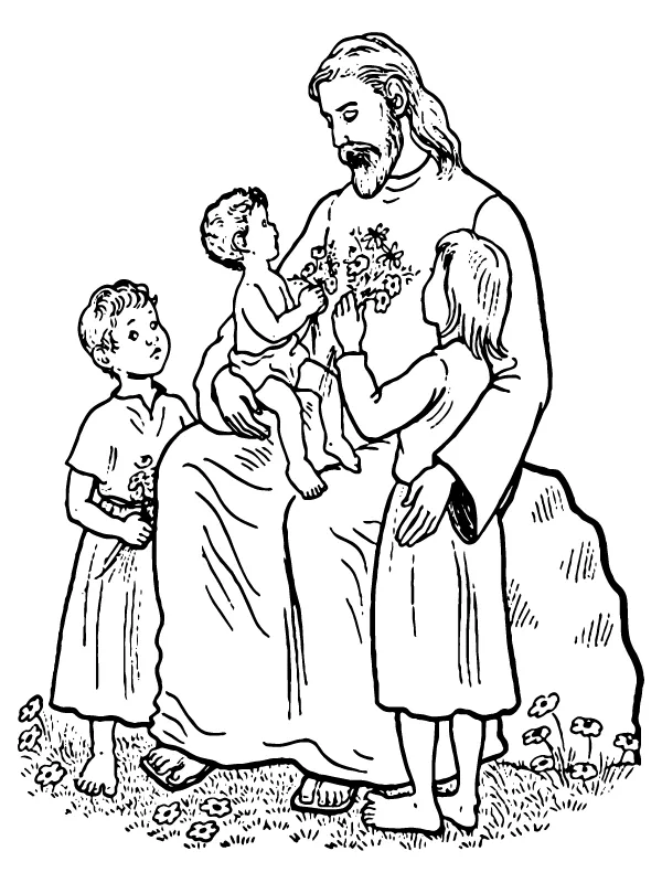 : Download Printable Jesus Cristo com crianças Coloring Page
