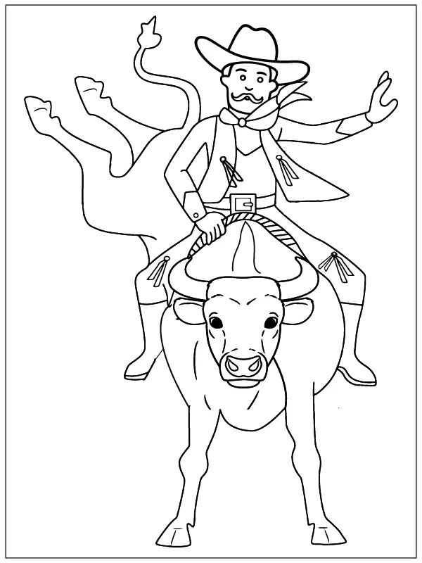 : Download Printable Cowboy montando um touro Coloring Page