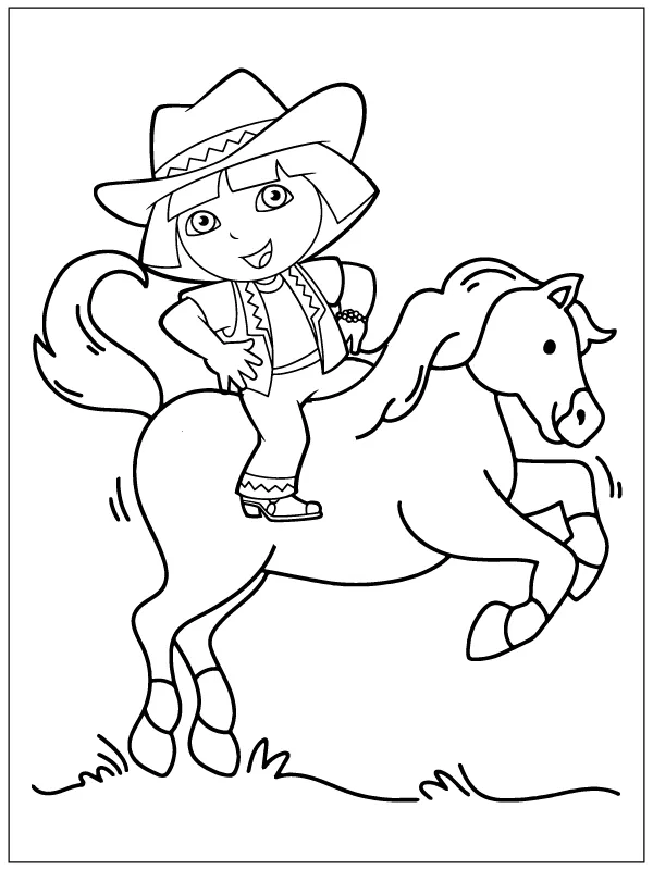 : Download Printable Cowboy Dora montando um cavalo Coloring Page