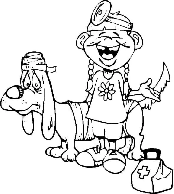 : Download Printable Menina engraçada brincando de veterinário Coloring Page