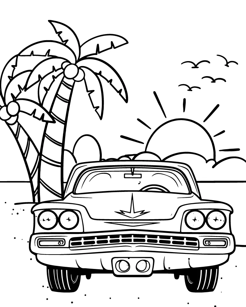 : Download Printable Lowrider ao pôr do sol Coloring Page
