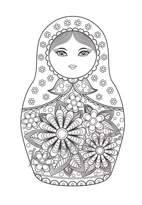Coloring description : Download Printable Russian Doll Matryoshka Coloring Page