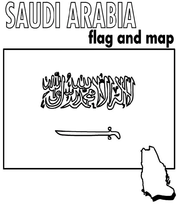 Coloring description : Download Printable Saudi Arabia Flag and Map Coloring Page