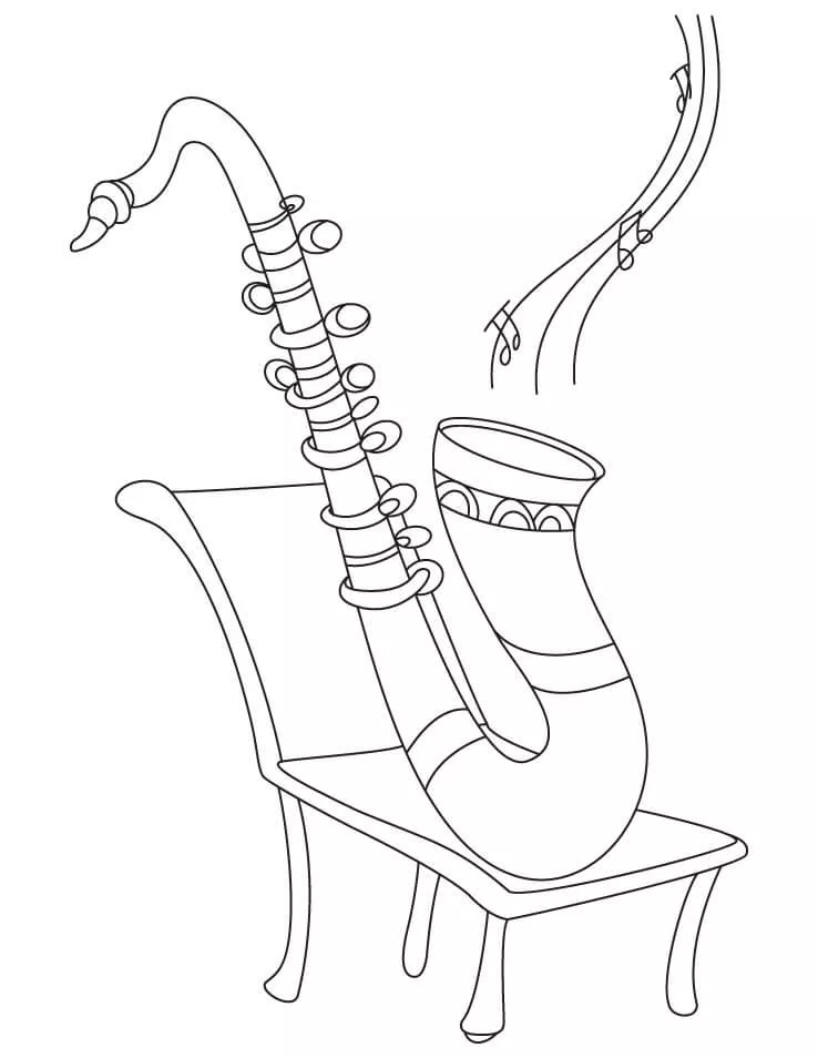 Coloring description : Download Printable Saxophone on a Chair Coloring Page