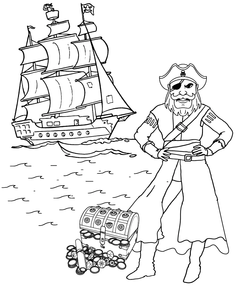 Coloring description : Download Printable Skull Pirate Flag and Treasure Chest Coloring Page