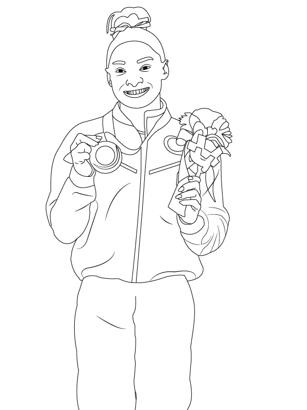 Coloring description : Download Printable Simone Biles Winning Medal in Tokyo Coloring Page