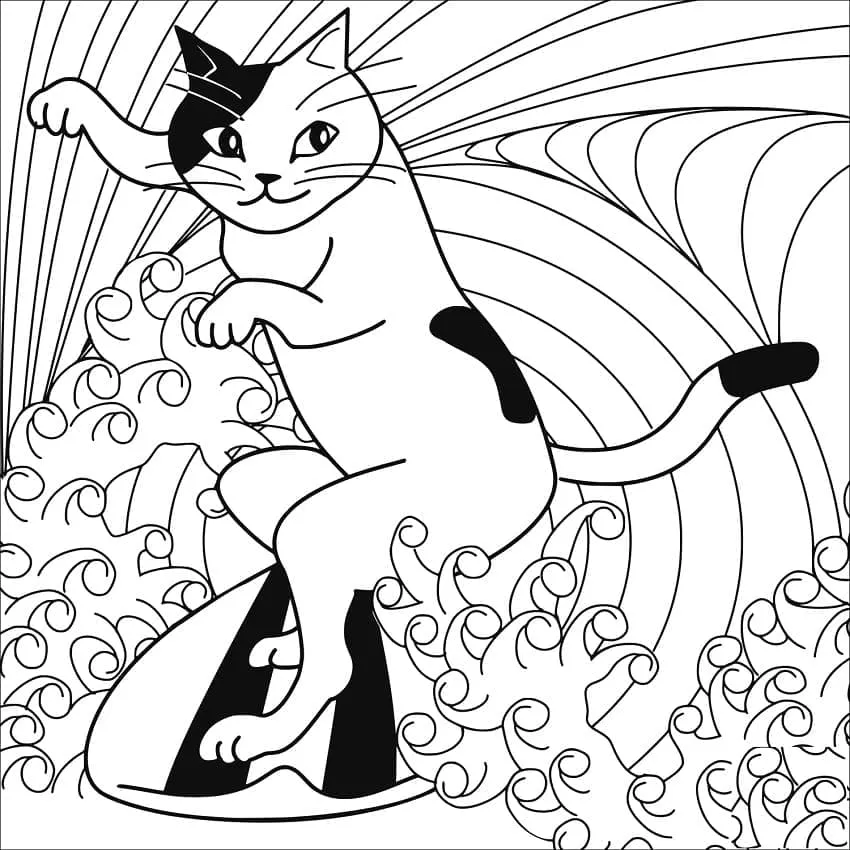 Coloring description : Download Printable A Cat Surfing Coloring Page