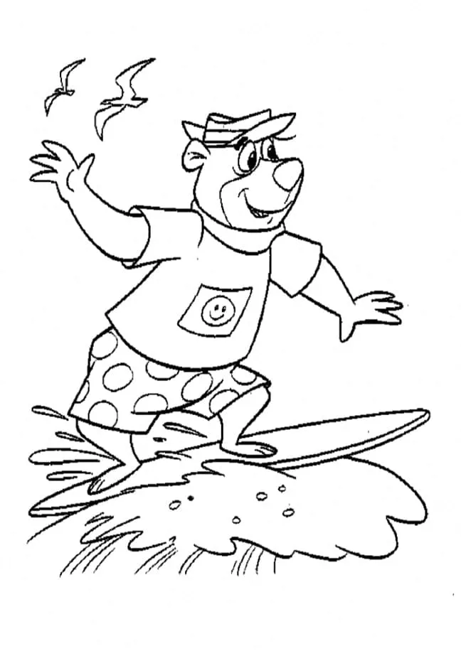 Coloring description : Download Printable Yogi Bear Surfing Coloring Page