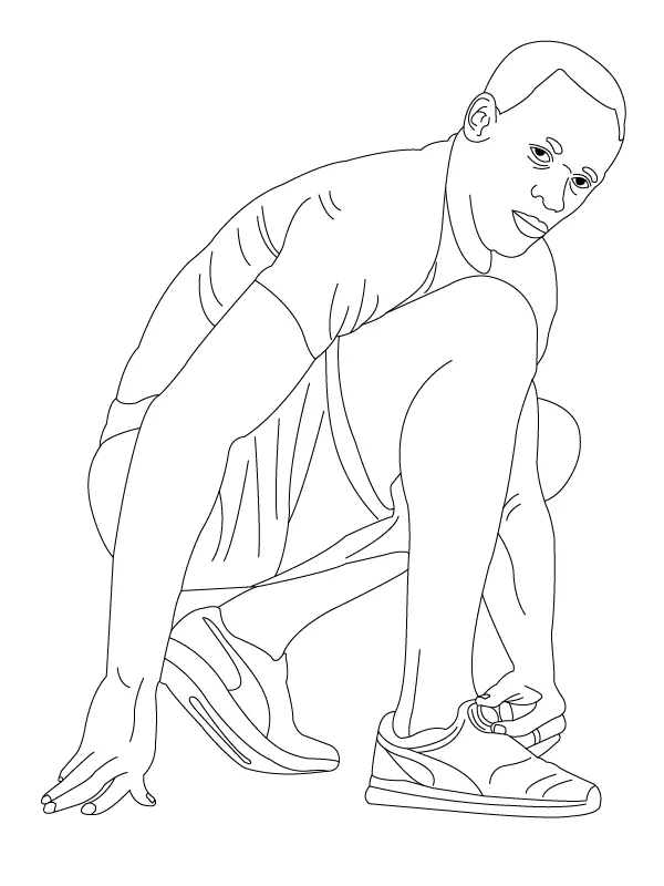 Coloring description : Download Printable Usain Bolt Fixing His Shoe Coloring Page