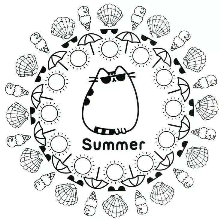 Coloring description : Download Printable Summer Pusheen Coloring Page