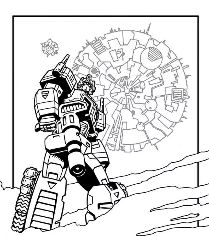 Coloring description : Download Printable Optimus and Cybertron Coloring Page