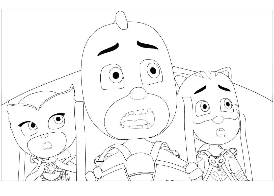 Coloring description : Download Printable Scared PJ Masks Coloring Page