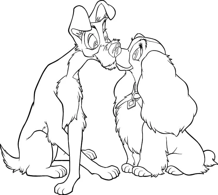 Coloring description : Download Printable The Tramp and Lady Kissing Coloring Page
