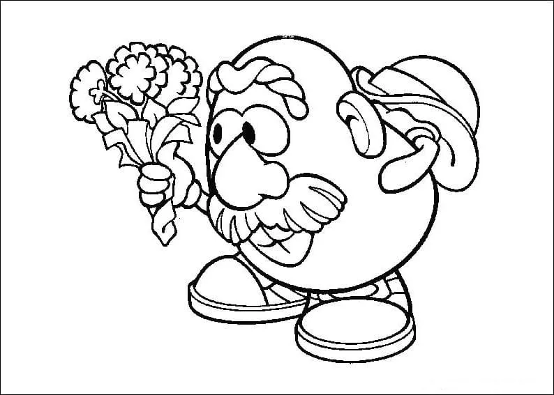 Coloring description : Download Printable Mr. Potato Head with Flowers Coloring Page